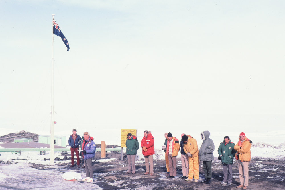 DescriptionHistoric, RecentDepictsR B ThomsonPhotographerAlison WelchSeason1984-1985Date Taken1984-1985 SeasonOriginalSlideNo. People>10LocationScott BaseGeolocation[1] Position