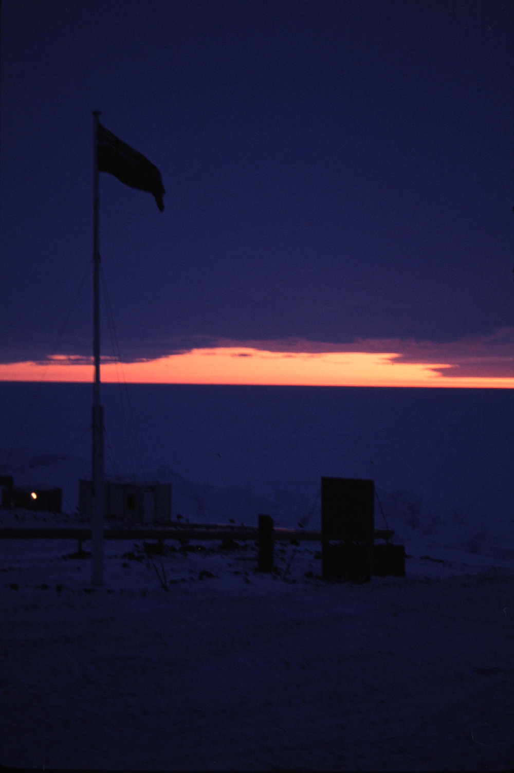 DescriptionDawn flag lowering ceremony re Varcoe and NewportPhotographerNicola HolmesDate Taken1992-10-14OriginalSlideLocationScott BaseGeolocation[1] Position
