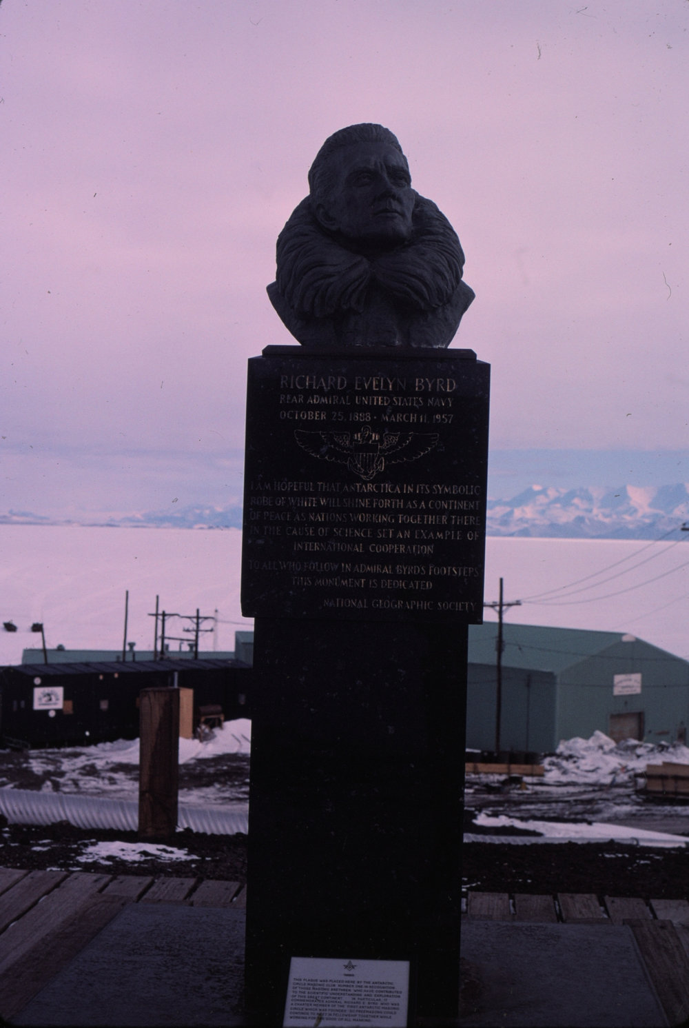 DescriptionMemorial to US Antarctic aviator Richard E ByrdDepictsRichard E ByrdSeason1984-1985Date Taken1984-1985 SeasonOriginalSlideLocationDunedinGeolocation[1] Position