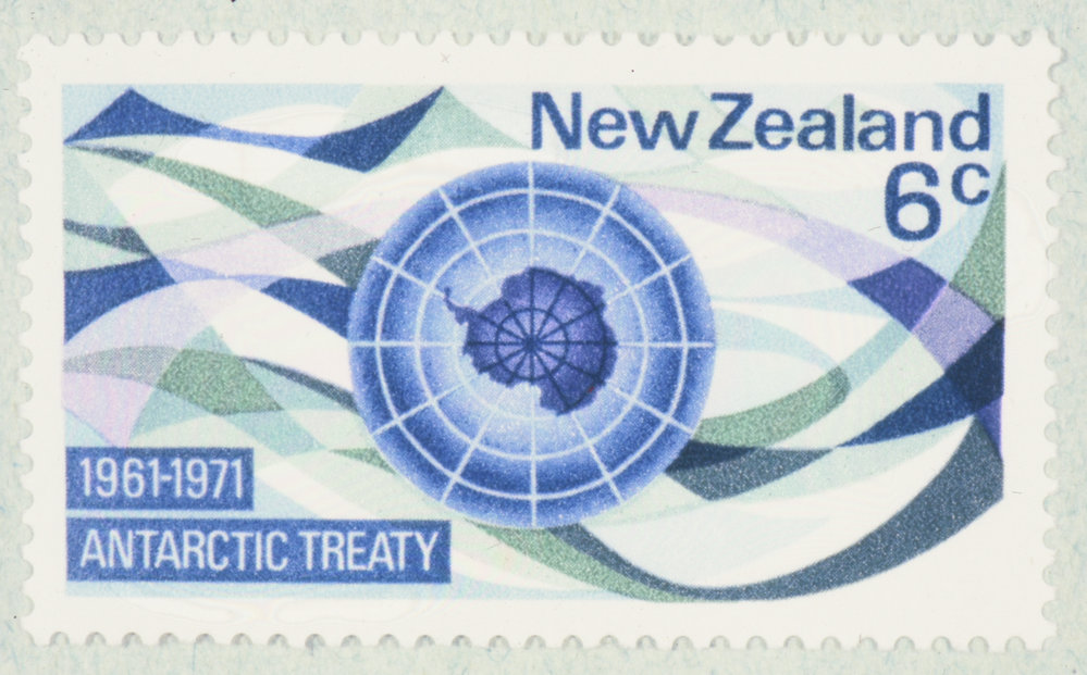 New Zealand Antarctic Treaty Stamp 6c 1971. Antarctica NZ, accessed 09/04/2026, https://adam.antarcticanz.govt.nz/nodes/view/10453