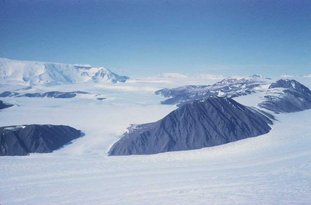 DescriptionFrom slopes of Mt Markham SE to Mt Miller across Marsh GlacierPhotographerGarth Matterson Season1959-1960Date Taken1959-1960 SeasonOriginalSlideLocationMarsh Glacier