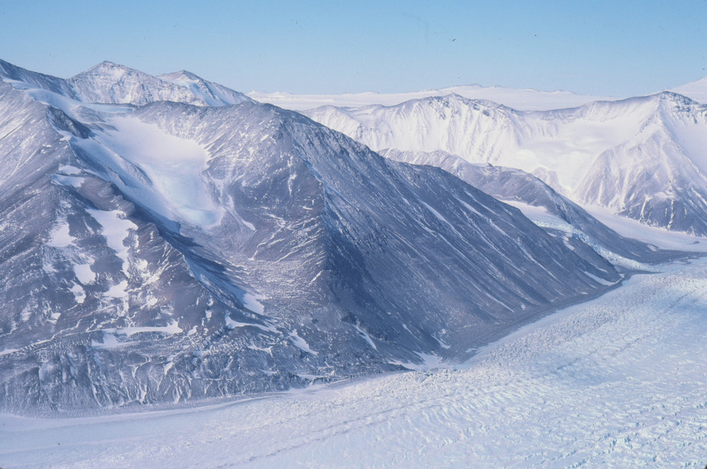 DescriptionDeep Freeze Range and Priestley Glacier. Terra NovaPhotographerKim WesterskovDate Taken1982-11-13OriginalSlideLocationPriestley GlacierGeolocation[1] Position