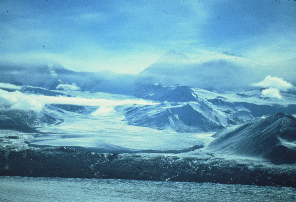 DescriptionRadian and Walcott snout in mist from Heald IslandPhotographerM ClarkSeason1977-1978Date Taken1977-1978 SeasonOriginalSlideLocationRadian GlacierGeolocation[1] Position