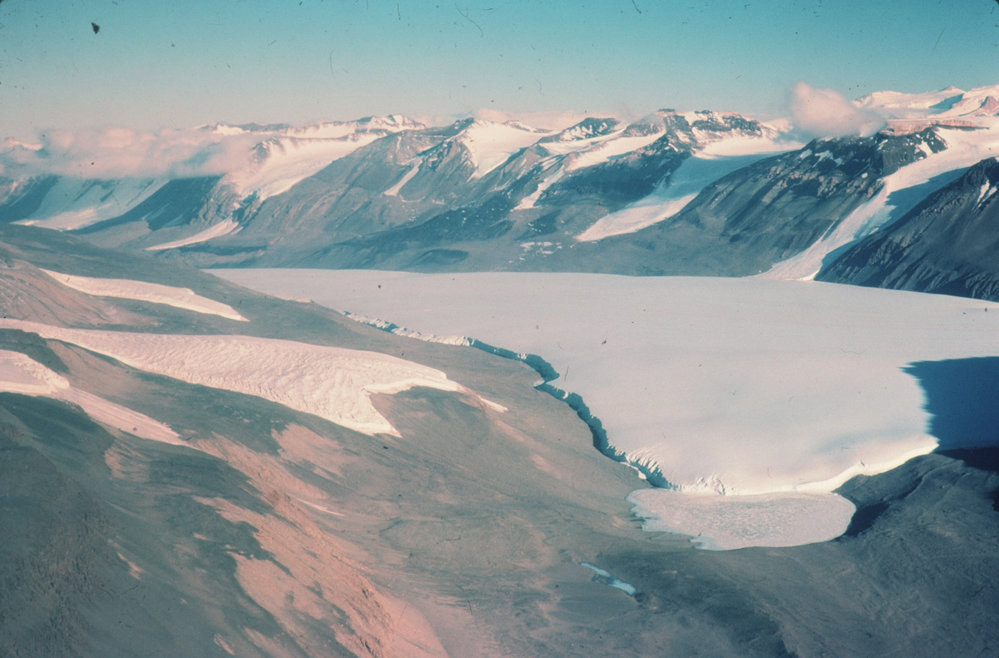 Looking down Pearse Valley to Lake Joyce, Taylor Glacier and Kukri Hills. Catspaw Glacier on left. Antarctica NZ, accessed 04/04/2026, https://adam.antarcticanz.govt.nz/nodes/view/10990