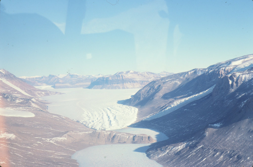DescriptionLooking up Taylor Glacier from above Lake BonneyPhotographerJohn PalmerSeason1976-1977Date Taken1976-1977 SeasonOriginalSlideLocationTaylor GlacierGeolocation[1] Position