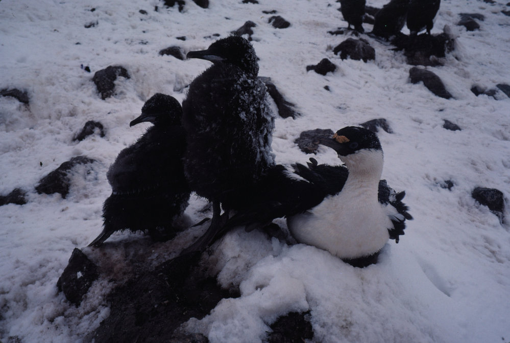 DescriptionBlue Eyed Shag and young on Paulet Island in the Weddell sEaPhotographerColin MonteathSeason1982-1983Date TakenBetween 1st January 1983 and 31st January 1983OriginalSlideLocationPaulet IslandGeolocation[1] Position