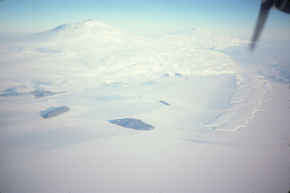 Ross Island- Mts Erebus and Terror, Erebus Glacier Tongue and Dellbridge Islands. Cape Evans at left. Antarctica NZ, accessed 02/04/2026, https://adam.antarcticanz.govt.nz/nodes/view/12738