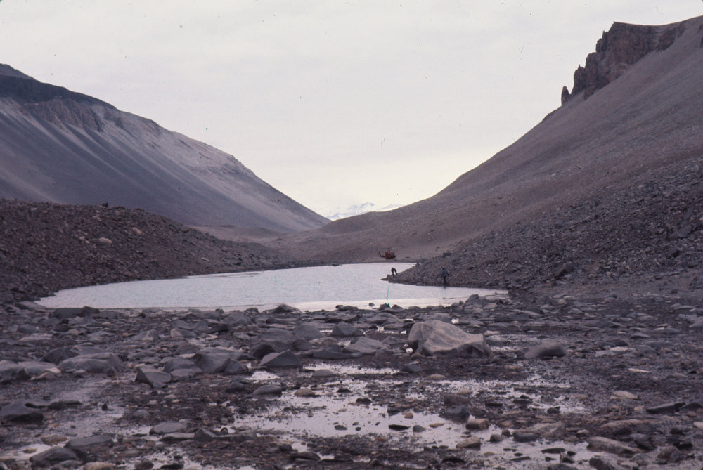 DescriptionDon Quixote Pond, Wright Valley (near Labyrinth)PhotographerNeville PeatSeason1970-1971Date TakenBetween 1st January 1971 and 31st January 1971OriginalSlideNo. People2-5LocationDon Quixote PondGeolocation[1] Position