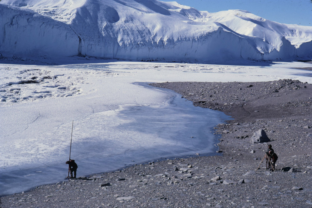 DescriptionLevelling, Lake Hoare- Canada Glacier behindPhotographerRichard (Dick) K McBrideSeason1971-1972Date TakenBetween 1st January 1972 and 31st January 1972OriginalSlideNo. People2-5LocationLake HoareGeolocation[1] Position