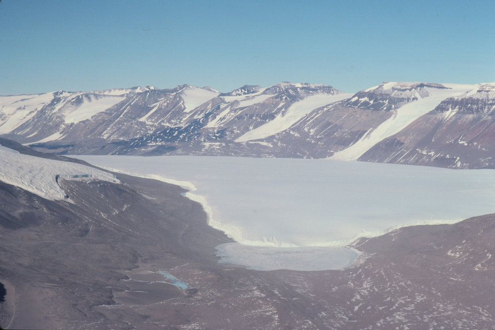 DescriptionLake Joyce (Pearse Valley) and Taylor GlacierPhotographerJohn PalmerSeason1976-1977Date Taken1976-1977 SeasonOriginalSlideLocationLake JoyceGeolocation[1] Position