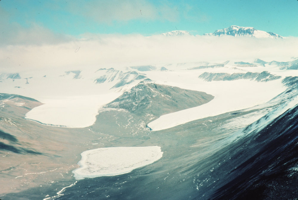 Adams Glacier (left), Miers Glacier and Lake Miers, Koettlitz Dry Valleys. Mt Lister behind right. Antarctica NZ, accessed 24/03/2026, https://adam.antarcticanz.govt.nz/nodes/view/12953