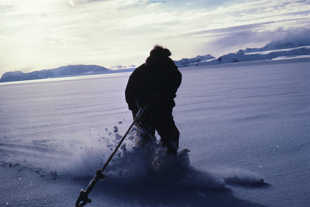 DescriptionSkiing behind tobogganPhotographerRichard K McIvorSeason1969-1970Date Taken1969-1970 SeasonOriginalSlideNo. People1LocationScott BaseGeolocation[1] Position