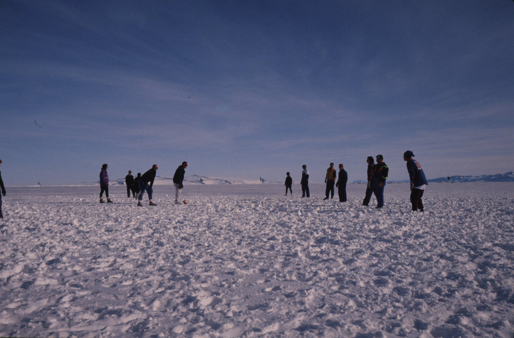 DescriptionTouch rugby on sea icePhotographerNicola HolmesSeason1992-1993Date TakenBetween 1st November 1992 and 30th November 1992OriginalSlideNo. People>10