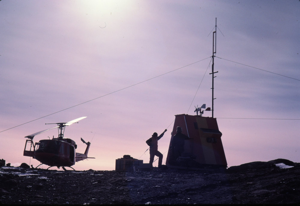 DescriptionHelicopter and VHF repeater on Mt NewallPhotographerAlison WelchSeason1984-1985Date Taken1984-1985 SeasonOriginalSlideNo. People2-5LocationMount NewallGeolocation[1] Position