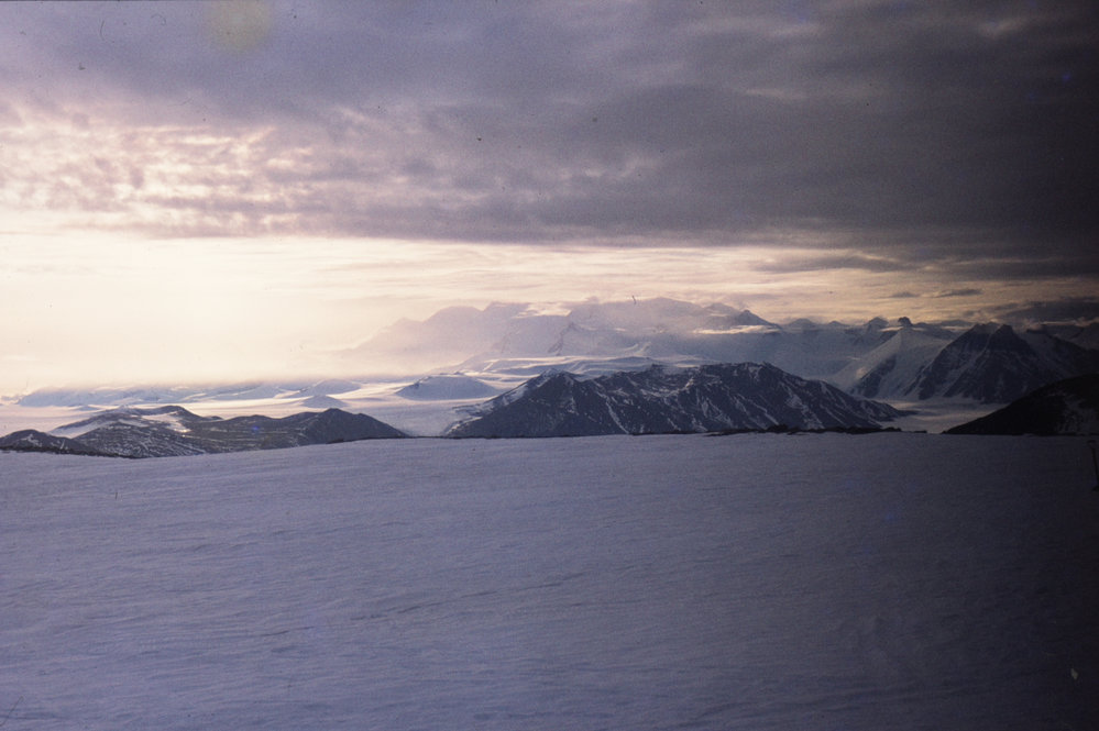 DescriptionBlue Glacier from Kukri HillsPhotographerRobert FindlaySeason1980-1981Date Taken1980-1981 SeasonOriginalSlideLocationKukri HillsGeolocation[1] Position