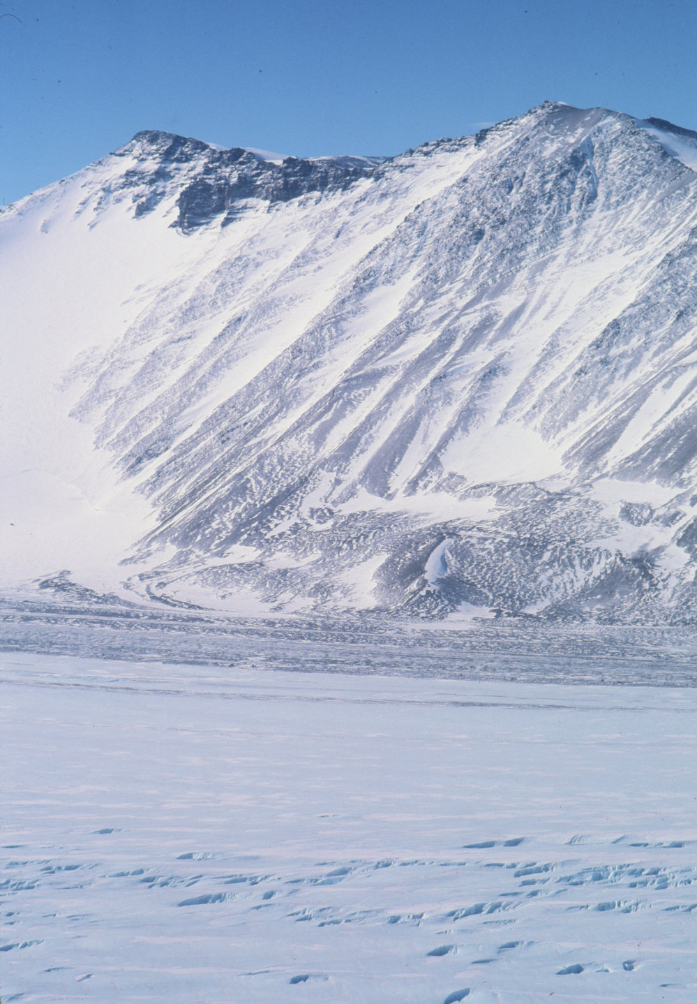 DescriptionDeep Freeze Range and Priestley Glacier. Terra Nova. Dave Skinner requested this shot. Rock strata top picture.PhotographerKim WesterskovProgrammeK002EventK002-8283Date Taken1982-11-13OriginalSlideLocationPriestley GlacierGeolocation[1] Position