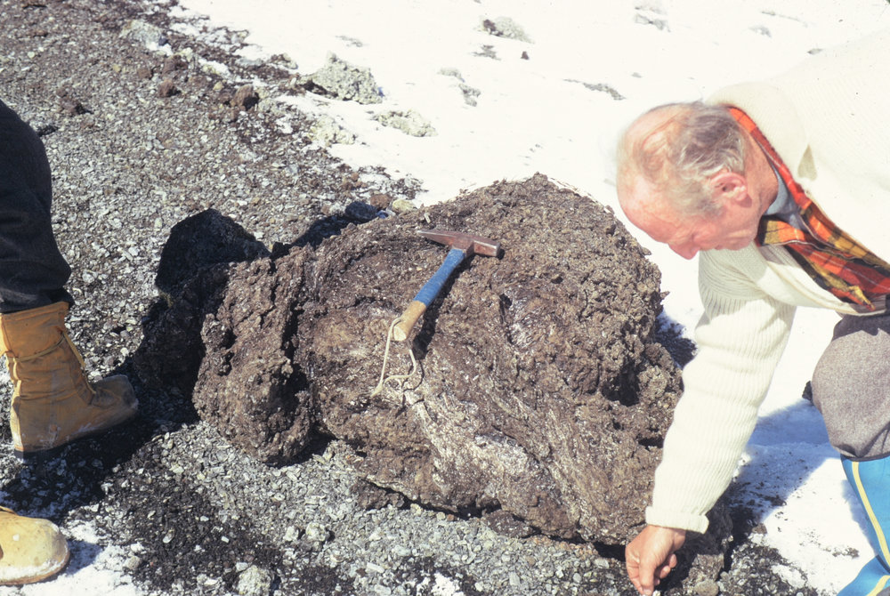 DescriptionLava Bomb thrown out near campPhotographerJ R KeysSeason1974-1975Date TakenBetween 1st December 1974 and 31st December 1974OriginalSlideNo. People2-5LocationMount ErebusGeolocation[1] Position