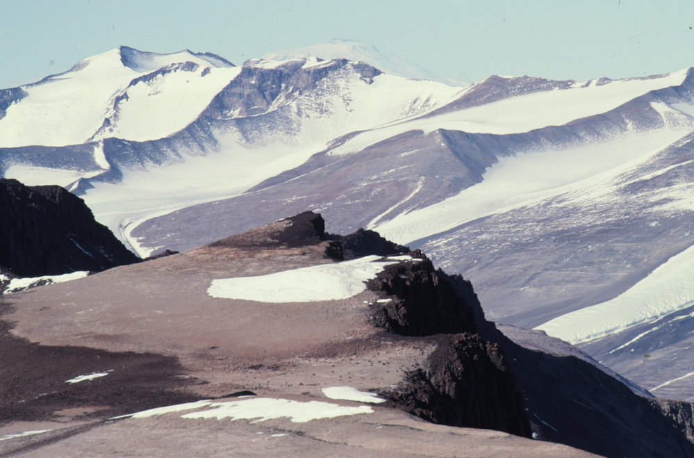 DescriptionMount Erebus from Mount Jason.PhotographerCraig PottonSeason1993-1994Date Taken1993-1994 SeasonOriginalSlideLocationMount JasonGeolocation[1] Position
