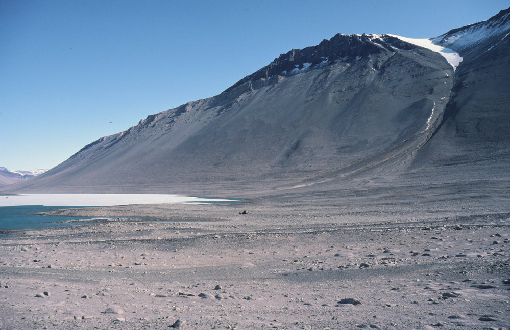 DescriptionMount Jason, Lake Vanda and Old Lake Levels.PhotographerKim WesterskovSeason1982-1983Date Taken1982-1983 SeasonOriginalSlideLocationMount JasonGeolocation[1] Position
