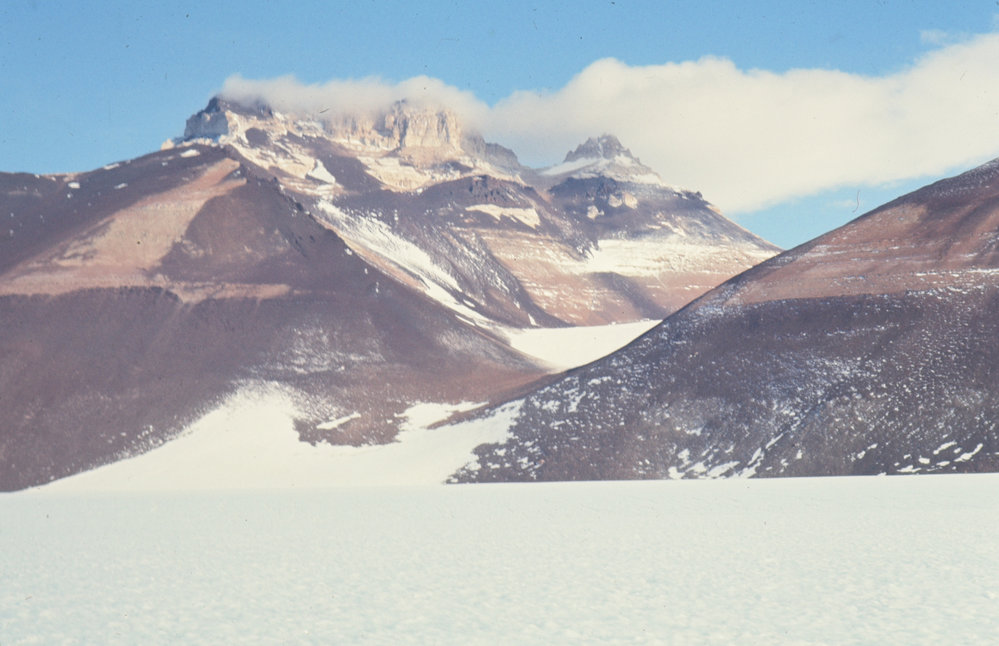 DescriptionKnobhead Mountain from Taylor Glacier.PhotographerJ D PalmerSeason1976-1977Date Taken1976-1977 SeasonOriginalSlideLocationTaylor GlacierGeolocation[1] Position