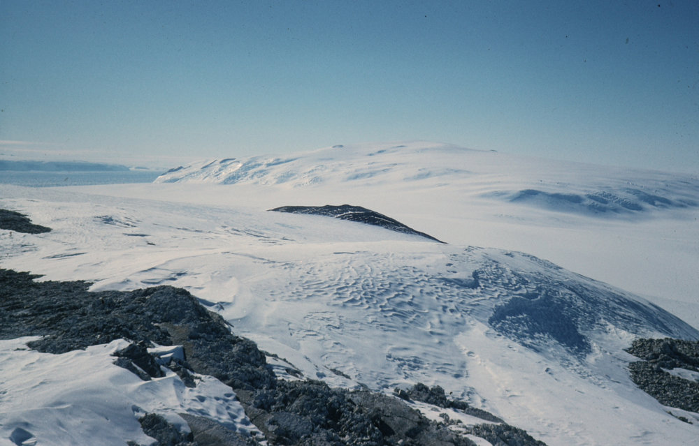 DescriptionFrom Survey H - Looking at Mount Selbourne - Byrd Glacier on Left.PhotographerGarth MattersonSeason1960-1961Date Taken1960-1961 SeasonOriginalSlideLocationByrd GlacierGeolocation[1] Position
