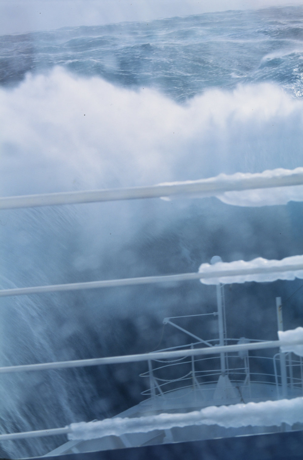 DescriptionStormy Seas and Ship's Bow.PhotographerGillian WrattSeason1992-1993Date TakenBetween 1st February 1993 and 28th February 1993OriginalSlideLocationSouthern OceanGeolocation[1] Position