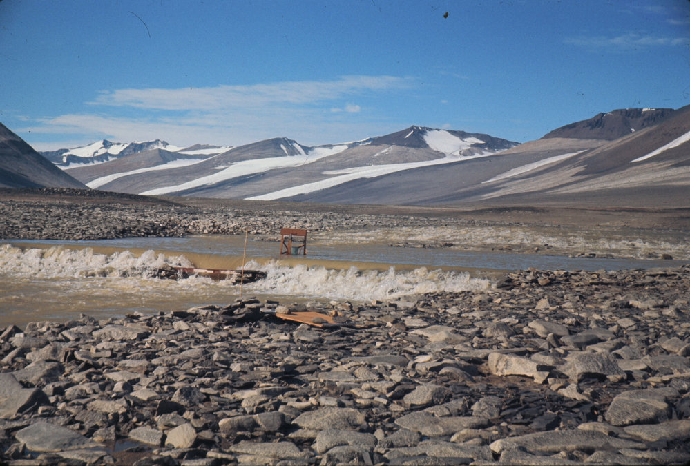DescriptionOnyx River weir- in flood from Vanda StationPhotographerDavid RandallSeason1970-1971Date Taken1970-1971 SeasonOriginalSlideLocationVanda StationGeolocation[1] Position