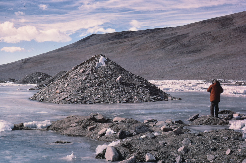 DescriptionIce covered moaine - approximately 300 yards in from edge of Lake MeinesPhotographerD RobertsSeason1970-1971Date Taken1970-1971 SeasonOriginalSlideNo. People1LocationMeines Valley