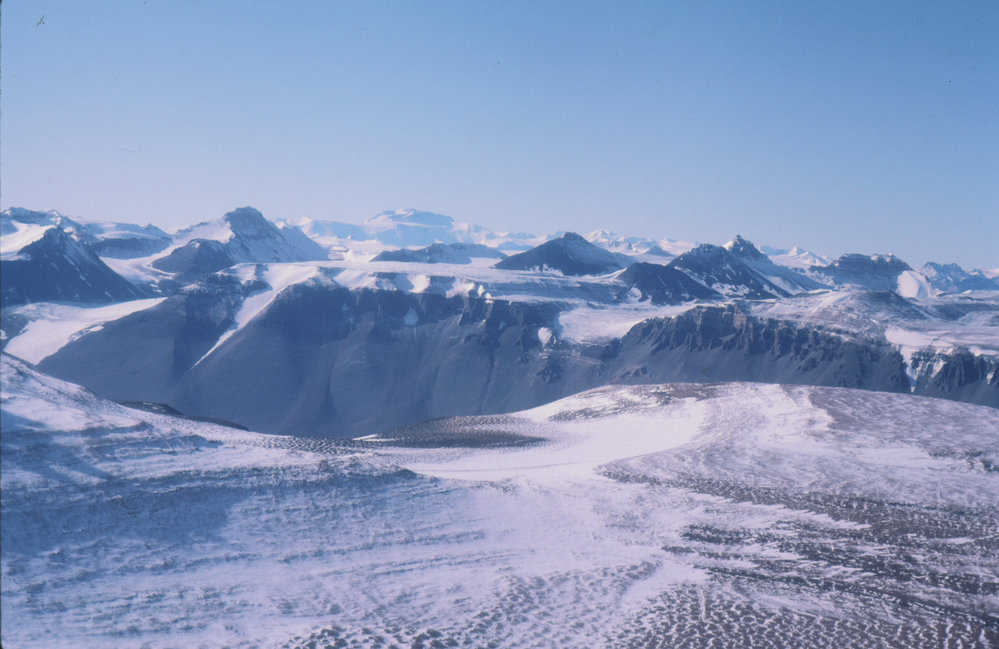DescriptionPatterned ground. Asgard Range (background) and Olympus Rand (foreground).PhotographerKim WesterskovOriginalSlideLocationOlympus RangeGeolocation[1] Position