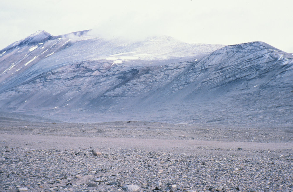 DescriptionDykes and Sills of Igneous MaterialPhotographerP FosterSeason1985-1986Date Taken1985-1986 SeasonOriginalSlideLocationLower Wright GlacierGeolocation[1] Position