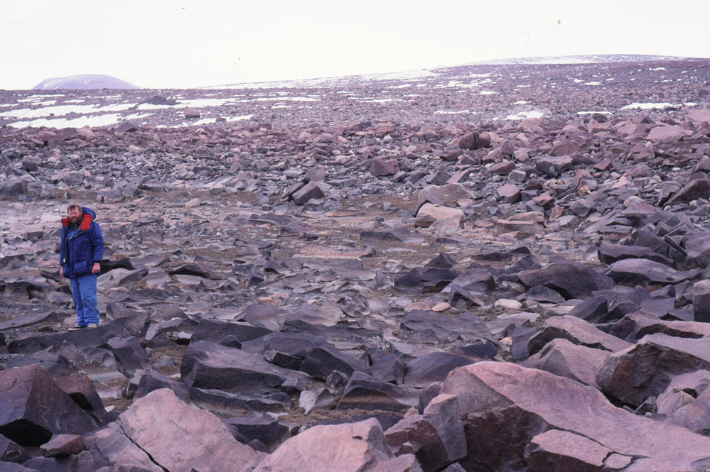 DescriptionSouth East part of Kar Plateau and Allan Green. Shows the block felsenmeer formed of the dolerite sill capping of the plateau and a dry tarn which has a thick layer of algal mat.DepictsAllan GreenPhotographerRod SeppeltProgrammeK024Season1992-1993Date TakenBetween 1st January 1992 and 31st January 1992OriginalSlideNo. People1LocationKar PlateauGeolocation[1] Position