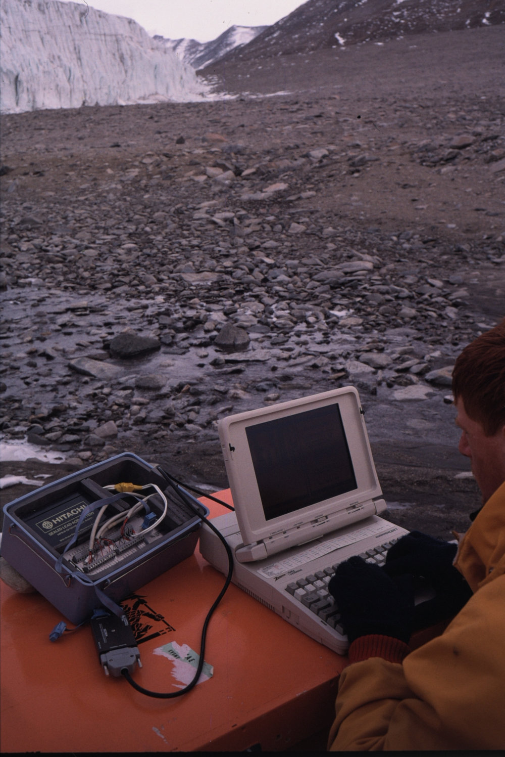 DescriptionHeather Campbell with Data loggerDepictsHeather CampbellPhotographerJack McConchieSeason1989-1990Date Taken1989-1990 SeasonOriginalSlideNo. People1