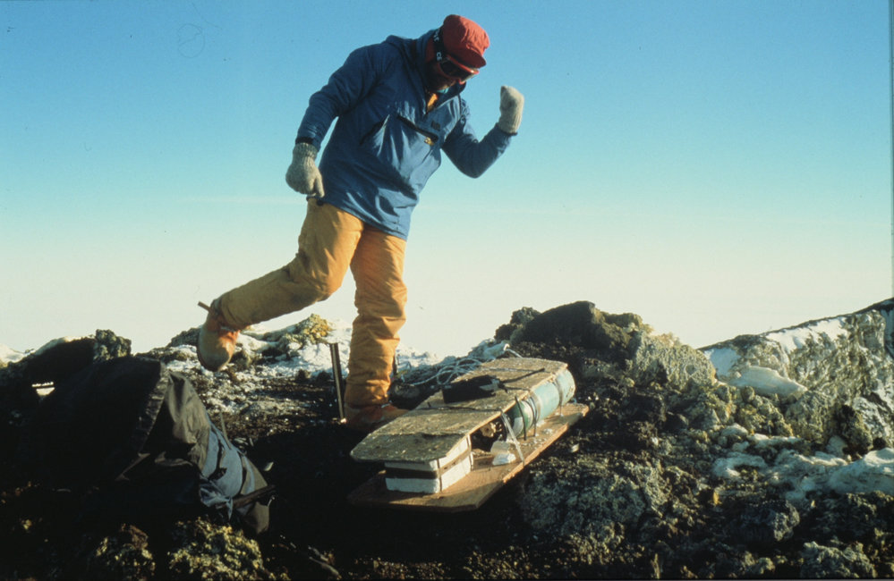 DescriptionErebus air sampling preparations.PhotographerDoug SheppardSeason1989-1990Date Taken1989-1990 SeasonOriginalSlideNo. People1LocationMount ErebusGeolocation[1] Position