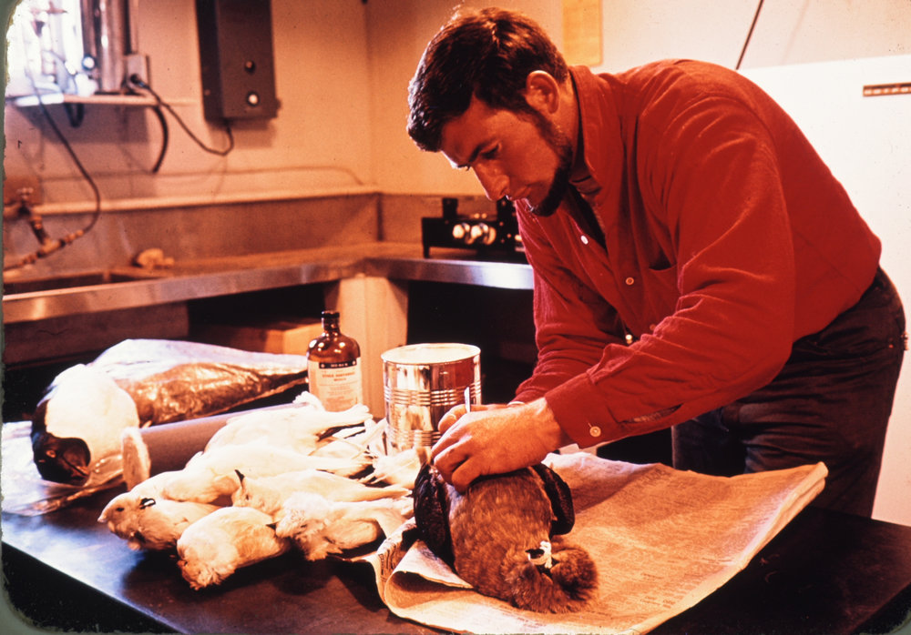 DescriptionJohn Cranfield in lab at Cape HallettDepictsJohn CranfieldPhotographerGuy ManneringSeason1962-1963Date Taken1962-1963 SeasonOriginalSlideNo. People1LocationCape HallettGeolocation[1] Position