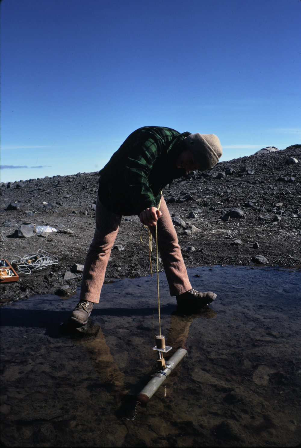 DescriptionJoy Woods (Canterbury University Biologist) takes water sample from small lake at Cape BirdDepictsJoy WoodsPhotographerFrederick P SzydlikSeason1973-1974Date TakenBetween 1st January 1974 and 31st January 1974OriginalSlideNo. People1LocationCape BirdGeolocation[1] Position