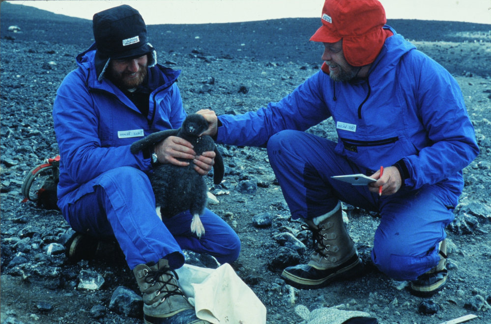 DescriptionBruce Thomas and Peter Wilson measuring Adelie Chick.DepictsBruce ThomasPeter WilsonPhotographerDarryl ThorburnSeason1990-1991Date Taken1990-1991 SeasonOriginalSlideNo. People2-5