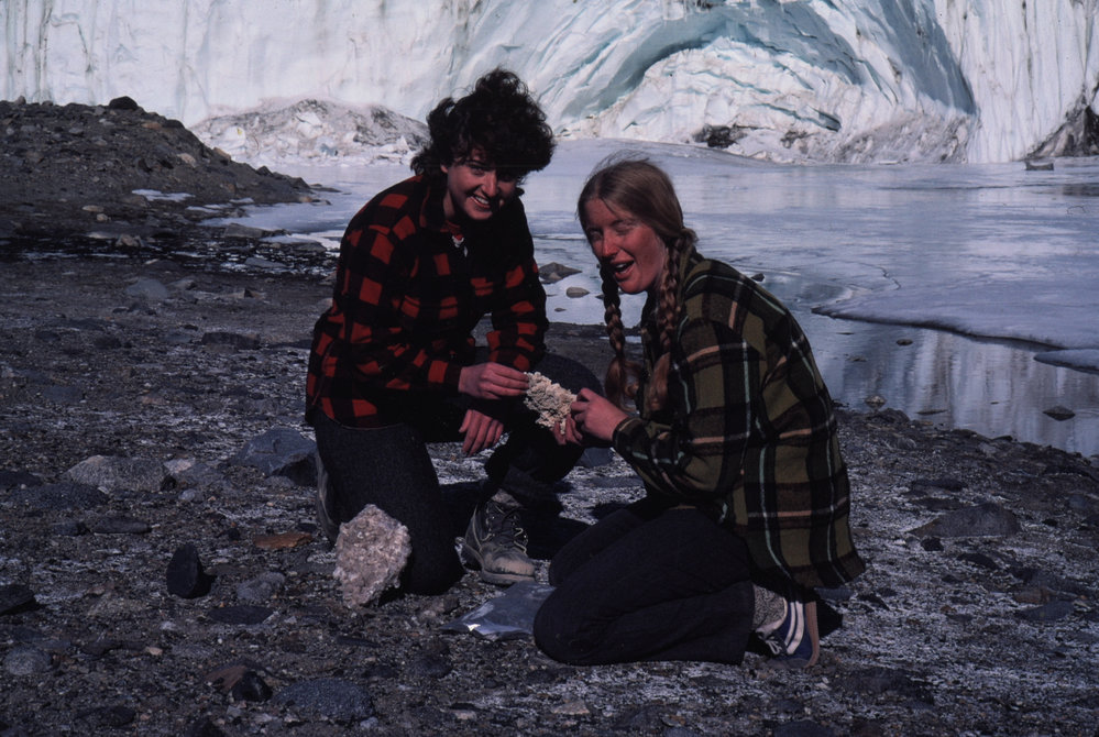 Fiona Judd (left) and Jan Clayton-Green, Waikato University, with gypsum crystals from Miers Valley. Antarctica NZ, accessed 02/04/2026, https://adam.antarcticanz.govt.nz/nodes/view/15755