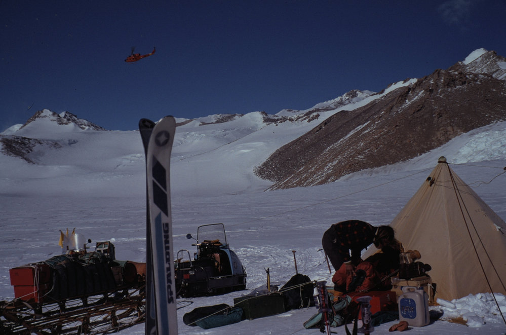 DescriptionField Camp at the foot of the Salient GlacierSeason1979-1980Date Taken1979-1980 SeasonOriginalSlideNo. People1LocationSalient GlacierGeolocation[1] Position