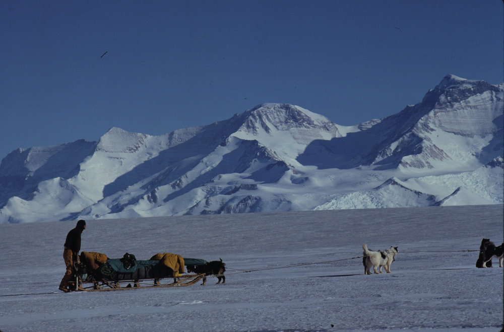 DescriptionDogs Heading for Lister Glacier from Blue Glacier.PhotographerColin MonteathSeason1979-1980Date TakenBetween 1st October 1979 and 31st October 1979OriginalSlideNo. People1LocationBlue GlacierGeolocation[1] Position