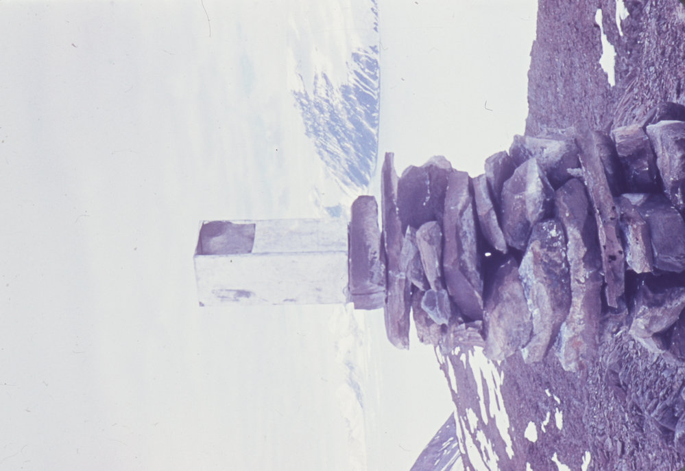 Survey beacon of rocks and pemmican tins at Station M