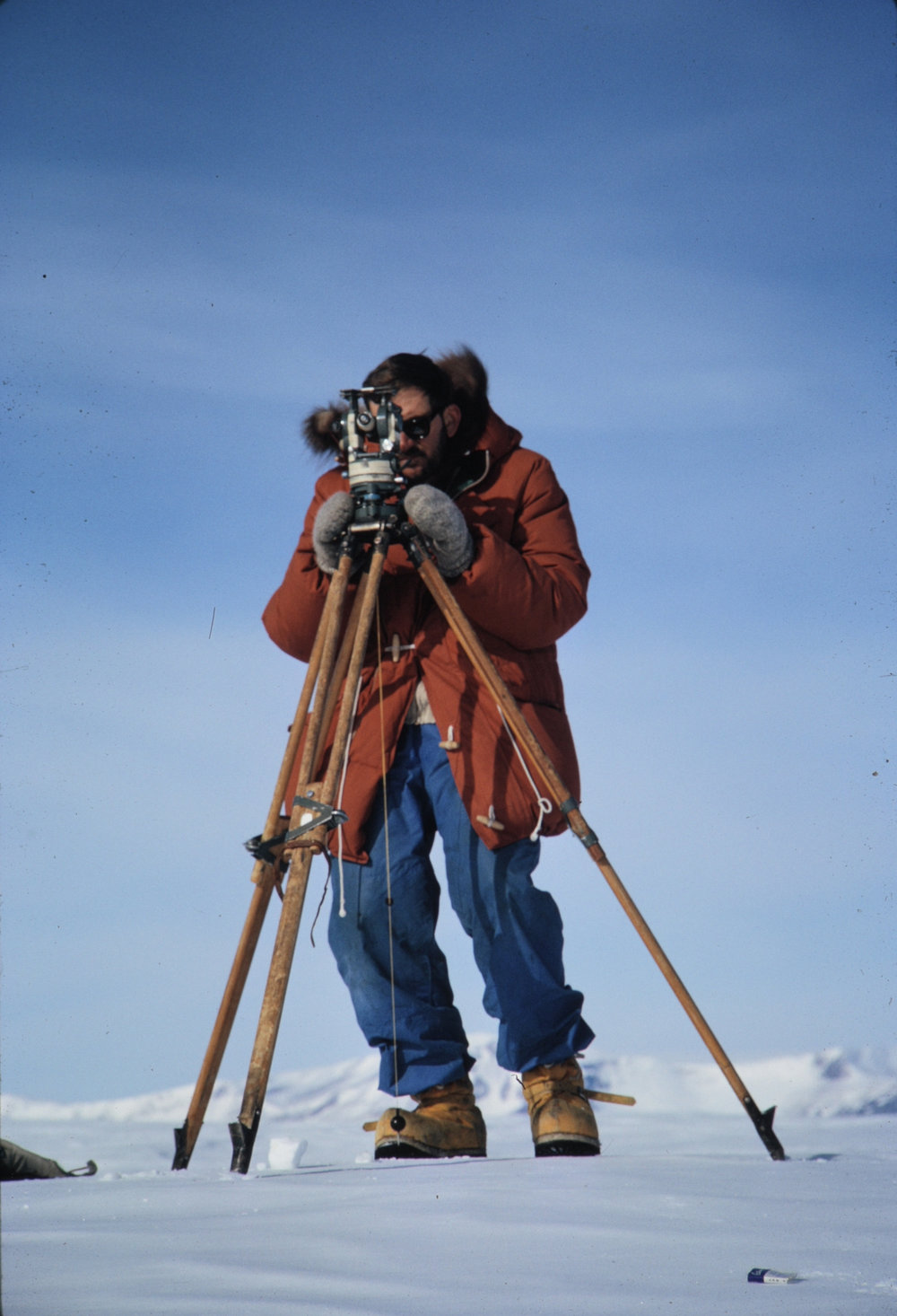 Taking Theodolite shots, Beardmore Glacier