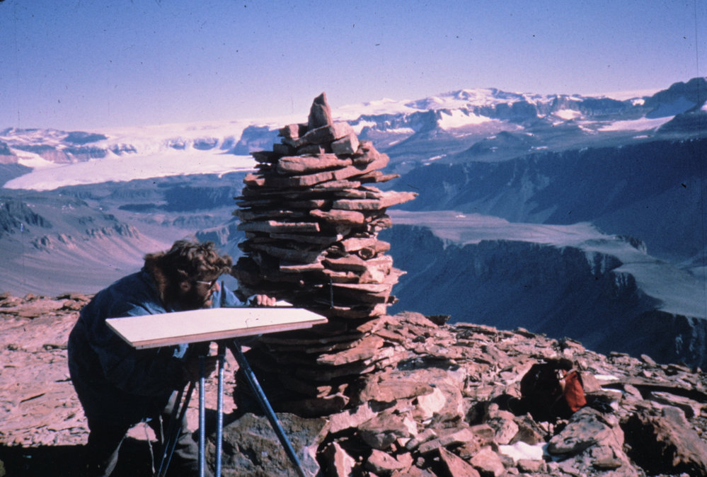 AddBy: Lawrie Cairns6th May 2015 9:48PMThis photo is of Alan Eskrick (Asgaard Ranger & Surveyor) the season before I went down there.. The connection with me is that Alan was a very fine Cairn builder.. He is setting up a Plane Table - and it looks to be on the feature which was referred to as Plane Table