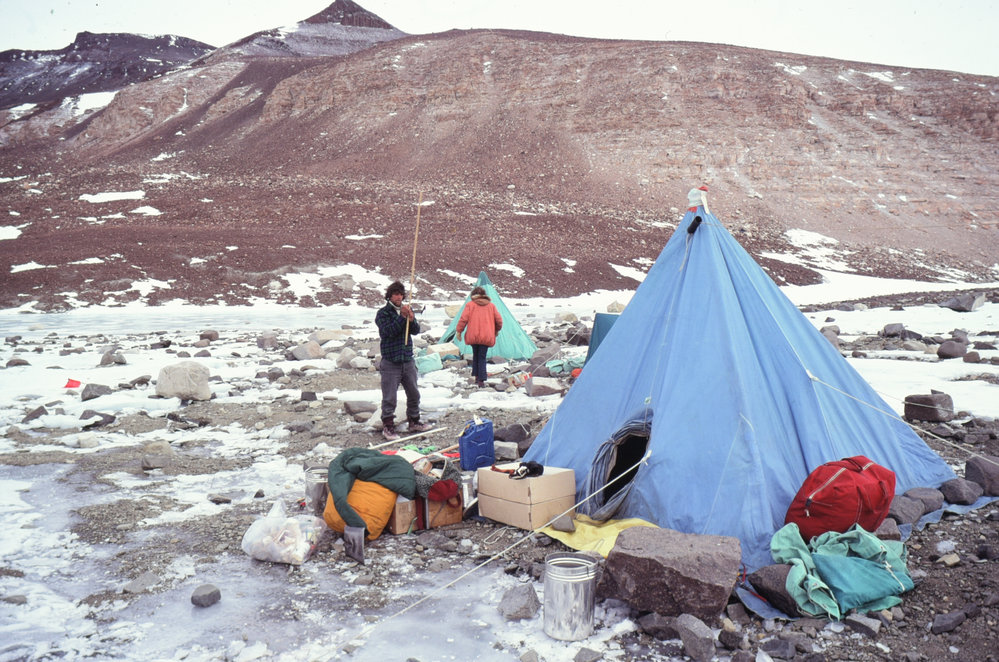 DescriptionHaskell Ridge Camp, Upper Darwin Glacier. Wilf Lammerink and Pete Radcliffe - field assistants.DepictsWilf LammerinkPeter RadcliffeSeason1978-1979Date Taken1978-1979 SeasonOriginalSlideNo. People2-5LocationHaskell RidgeGeolocation[1] Position