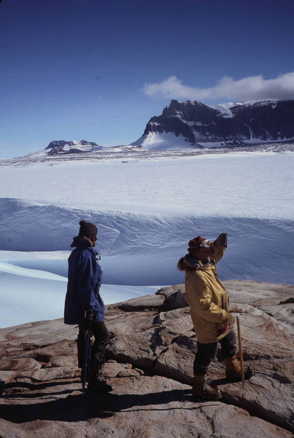 DescriptionNorth of Alligator Peak Looking Towards Warren Range and Head of Deception Glacier.DepictsChris ChristoffelStephen BannisterProgrammeK013EventK013-8081Season1980-1981Date Taken1980-1981 SeasonOriginalSlideNo. People2-5LocationAlligator PeakGeolocation[1] Position