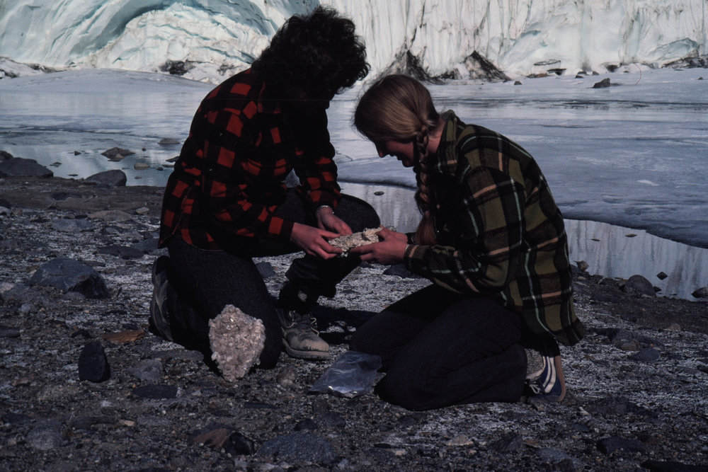 Fiona Judd & Jan Clayton-Greene with sypsum crystal