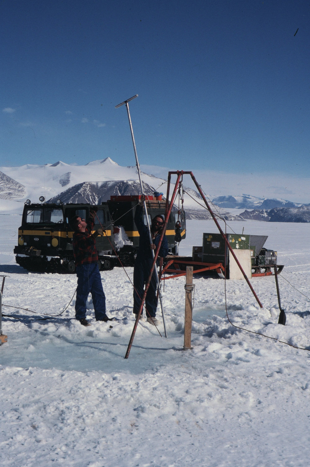 DescriptionAlex Pyne and Dave Hotop at Sediment Trap Site. Granite House in rocky knob below Mount England.DepictsAlex PyneDave HotopSeason1989-1990Date Taken1989-1990 SeasonOriginalSlideNo. People2-5LocationMount EnglandGeolocation[1] Position