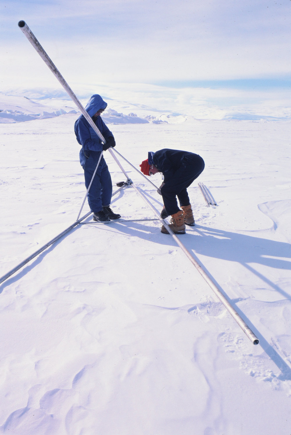 Hendy and Ede with tripod on the sea ice near Scott Base. Antarctica NZ, accessed 02/04/2026, https://adam.antarcticanz.govt.nz/nodes/view/16456
