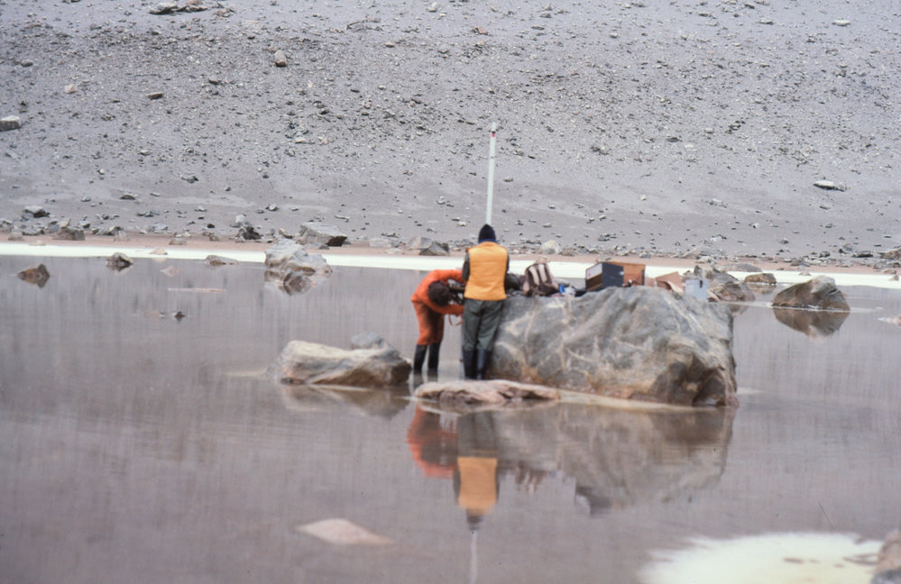 DescriptionDon Juan Pond Water Level Recorder.PhotographerP FosterSeason1985-1986Date Taken1985-1986 SeasonOriginalSlideNo. People2-5LocationDon Juan PondGeolocation[1] Position