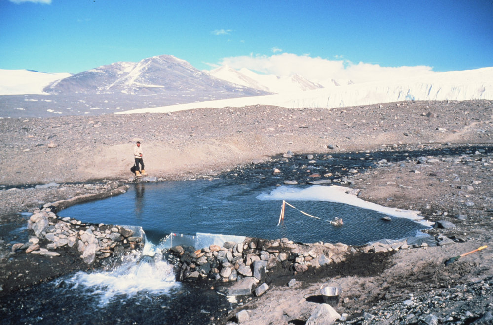 DescriptionWaikato V-Notch on Fryxell Stream.PhotographerKeith ThompsonSeason1980-1981Date TakenBetween 1st January 1981 and 31st December 1981OriginalSlideNo. People1LocationLake FryxellGeolocation[1] Position