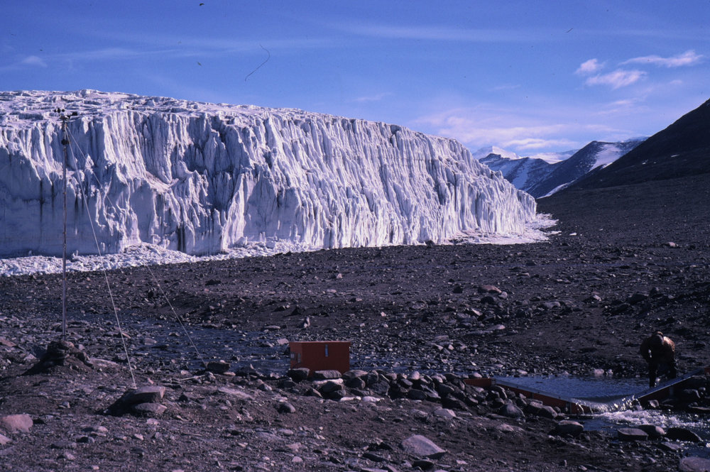 DescriptionClimate and hydrological station on the Adams StreamPhotographerJack McConchieSeason1989-1990Date Taken1989-1990 SeasonOriginalSlideNo. People1LocationMiers GlacierGeolocation[1] Position